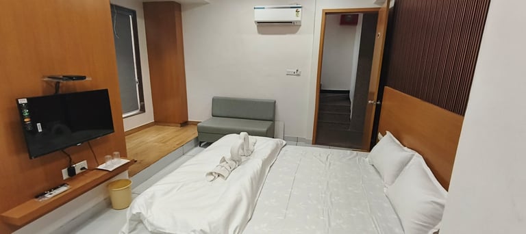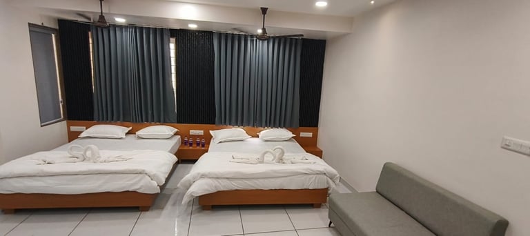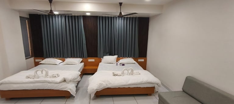 Experience luxury and comfort in our Couple Room, featuring premium amenities, clean and hygienic spaces, and personalized service for an extraordinary stay in the sacred city of Dwarka.
